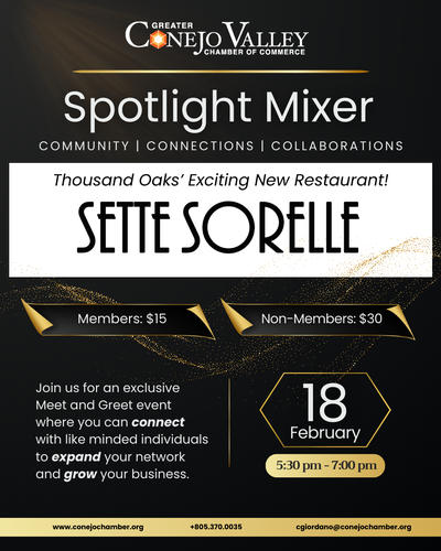 Connect, Network & Engage at Thousand Oaks newest restaurant Sette Sorelle at the Palm Garden Hotel! Sette Sorelle will be hosting delicious small bites and appetizers, as well as one cocktail or beverage of your choice.*